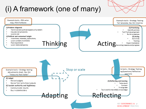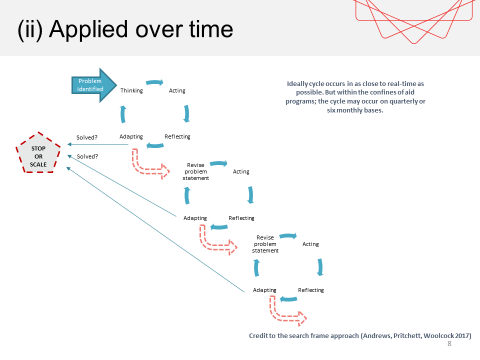It also features a case study of a successful PEA application that illustrates how ‘working politically’ moves from a simple PEA analysis to how it can be applied in different ways into help programmes adapt to their contexts. Therefore, it’s an on-going process of thinking and reflecting on the most effective course of implementation to achieve program objectives and results within the changing political dynamics, and capturing that knowledge in adapted work plans, monitoring and evaluation, reporting, etc.